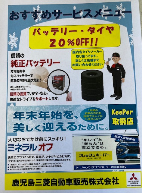 カテゴリー:キャンペーンバッテリータグ:EKクロスEKクロスEVEKスペースEKワゴンアウトランダーPHEVエクリプスクロスPHEVデリカD5デリカミニデリ丸。トライトン鹿児島 三菱車鹿児島 中古車鹿児島 隼人鹿児島三菱自動車鹿児島三菱自動車販売 隼人店