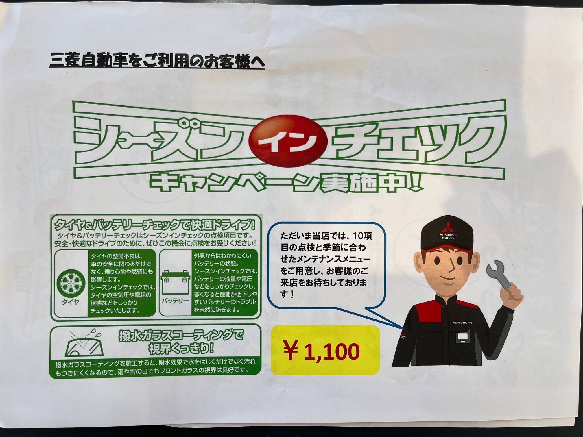 シーズンインチェックでは10項目の簡易的な点検¥1,100で行っております!👷♂️