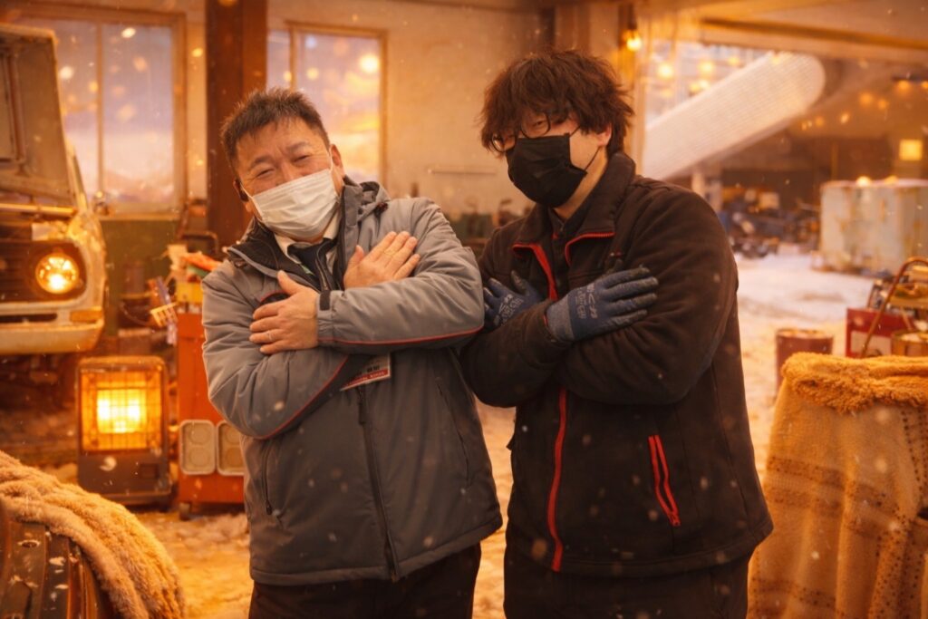 寒そうな中村スタッフと南スタッフも…
